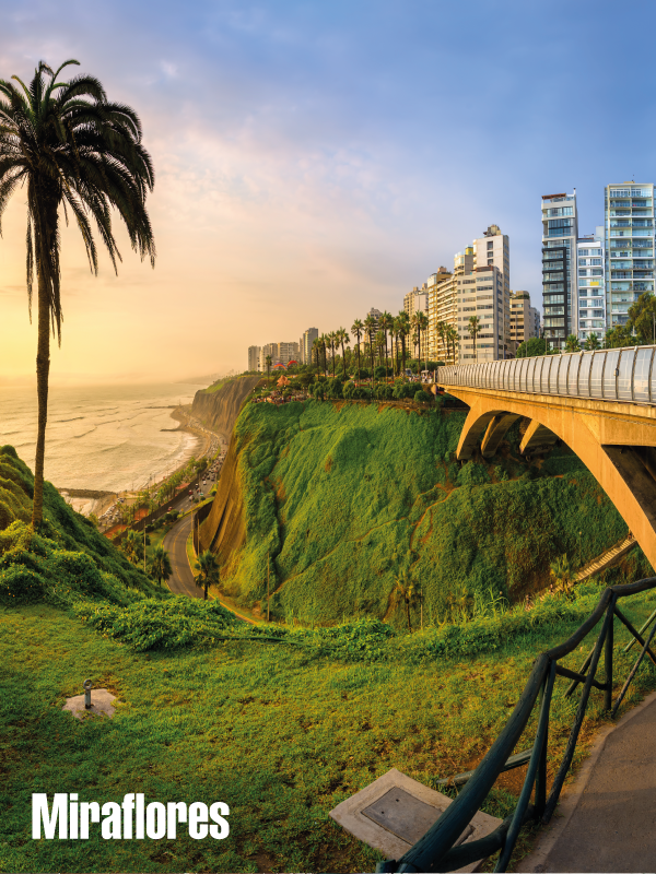 En el último día, los huéspedes disfrutan de una experiencia urbana a elección: una salidad de trail running con corredores locales al popular Morro Solar, un walking tour por Miraflores y Barranco o un tour guiado en bicicleta por la ciudad. Luego, se realiza una visita al Centro Histórico de Lima y un almuerzo de despedida. Por la tarde, un traslado privado conduce a los huéspedes al aeropuerto para su vuelo internacional de salida.